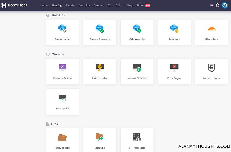 As shown in the previous screenshots, Hostinger does not incorporate the cPanel into the dashboard. This may or may not be a good thing for some users, as many are accustomed to the cPanel’s layout.