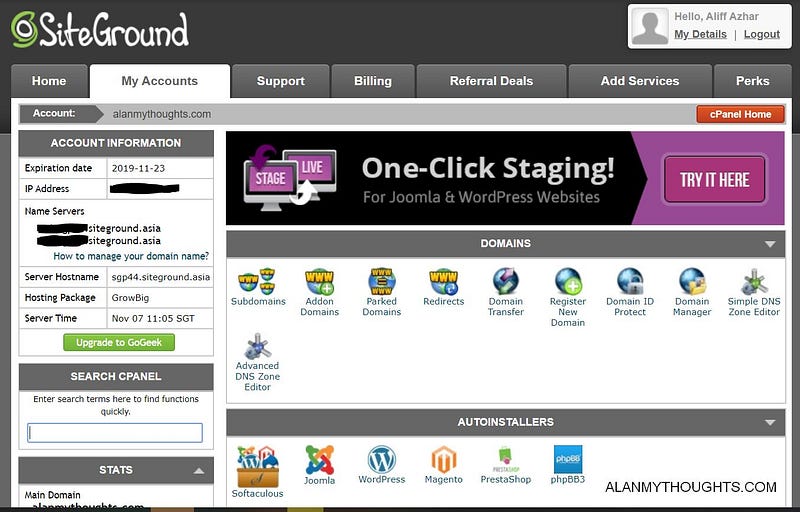 After that, with tonnes of research on which web host to choose, I opt for SiteGround. At that time, there was a considerable discount offering due to the Black Friday sales, and therefore I could grab it within the time frame.